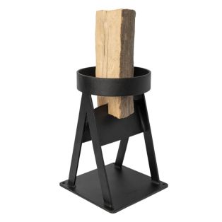 Die Aduro Sicherheitsmanschette zum Holzspalten wird auf einem Hauklotz befestigt und nimmt Holzscheite bis zu 12 cm im Querschnitt auf.
